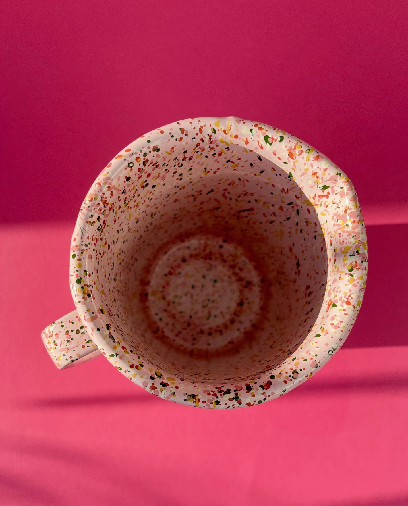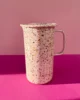 Różowy dzbanek emaliowany ręcznie malowany z kolekcji Blush Meadow w kolorowe plamki i kropki. Solidny, trwały i pełen koloru, który nie blaknie w trakcie codziennego użytkowania. Można go bezpiecznie myć w zmywarce. Powierzchnia dzbanka jest jedwabiście gładka i nieporowata, dzięki czemu bardzo łatwo się go czyści.