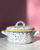 Garnek emaliowany z kolekcji Wonder Wheel w różnokolorowe kropeczki z żółtym akcentem kolorystycznym. Jego niewielki rozmiar i poręczny kształt sprawiają, że świetnie sprawdza się zarówno w codziennym użytkowaniu, jak i przy bardziej precyzyjnych kuchennych zadaniach. Solidny, trwały i pełen koloru, który nie blaknie w trakcie codziennego użytkowania. Można go bezpiecznie myć w zmywarce. Powierzchnia garnka jest jedwabiście gładka i nieporowata, dzięki czemu bardzo łatwo się ją czyści – nawet przypalone miejsca odchodzą bez szorowania. Nadaje się na wszystkie rodzaje kuchenek, również na indukcję. Można go używać w piekarniku do 250 °C i na ogniu.
